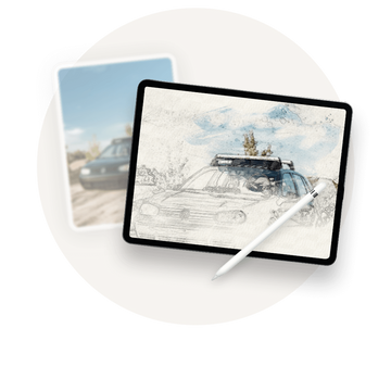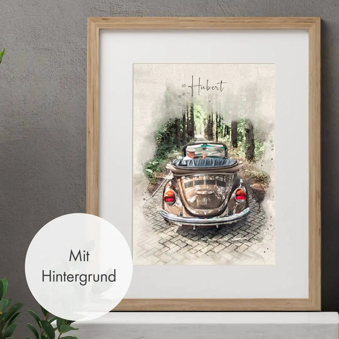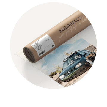 Choose between poster, canvas or digital painting. You can personalize your AQUARELLS with names, dates or words. With a lot of love we create your personalized car painting from your photo. The result? An absolutely unique piece!