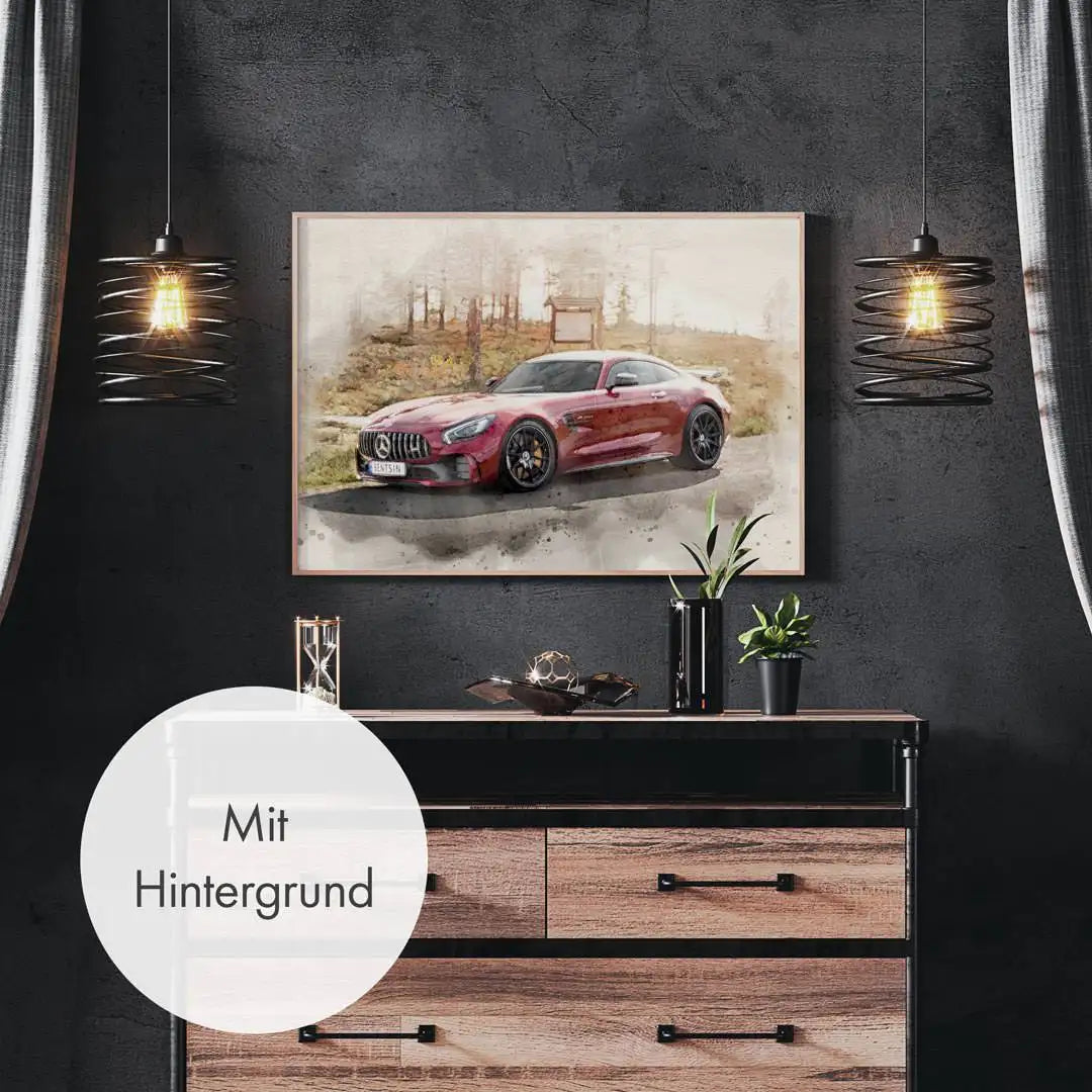The car is often the pride or the biggest dream of a man. It is all the nicer to capture your dream car as a painting for eternity! Your auto portrait is more than just a painting: it is a memory with a special meaning or a personal gift for all car lovers!