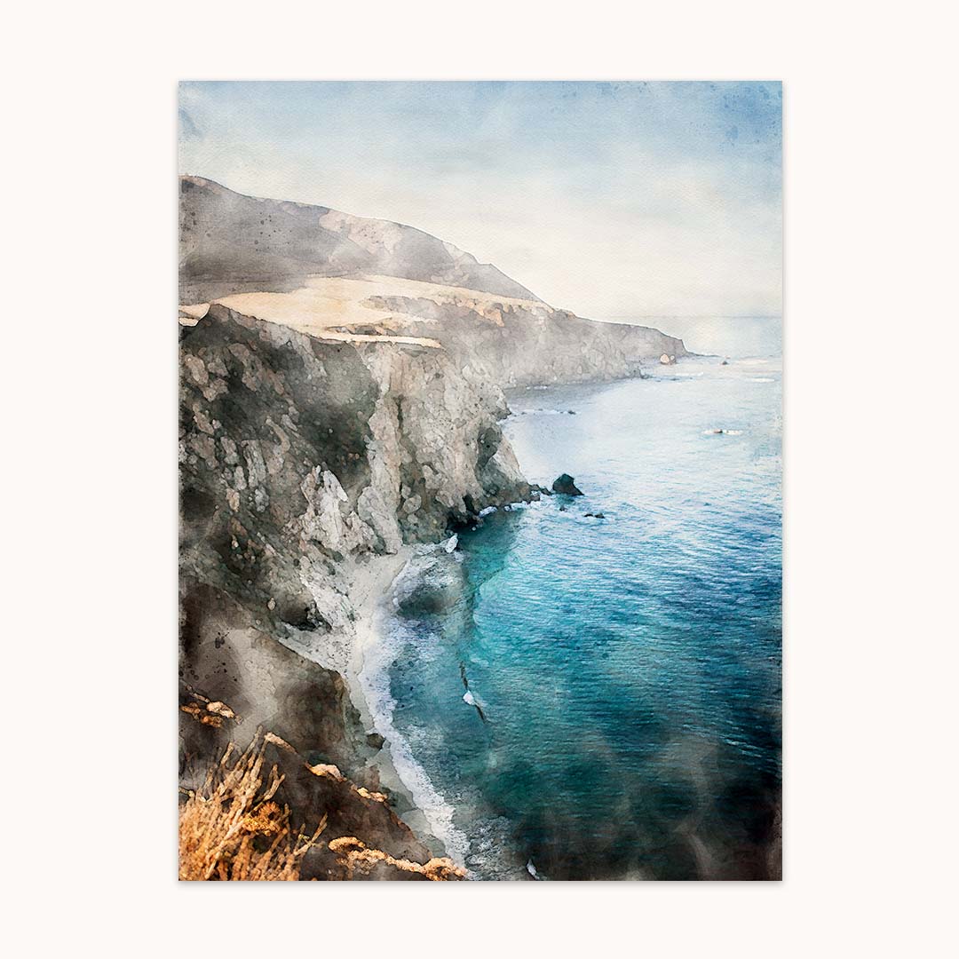 Beautiful beach atmosphere of Bahamas painted in watercolor from above. Perfect for every summer feeling for your home. Combine the motif perfectly with other pictures from the sea collection.