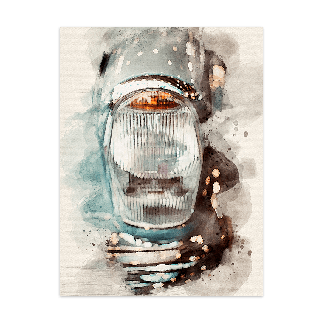 Echte Auto-Klassiker in Aquarell gemalt. Perfekt für für Dein Zuhause oder als Geschenk. Kombiniere das Motiv perfekt mit anderen Bilder aus der Auto-Kollektion. Nicht das passende Motiv dabei? Sende uns Dein Lieblingsfoto und wir verwandeln es in ein Aquarell Kunstwerk.